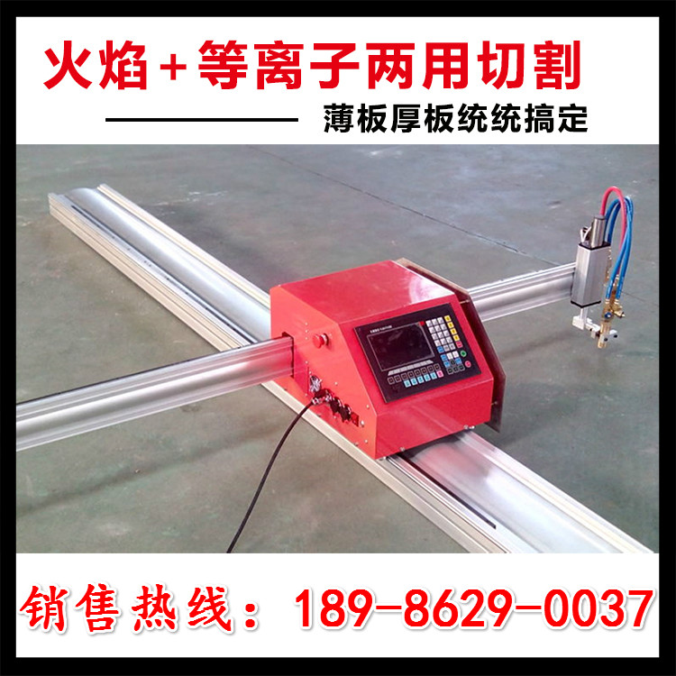 整機可采用火焰切割和等離子切割兩用功能,切割普通碳鋼板6-100mm,采用火焰功能。如果是6mm以下切割,必須配備等離子切割機。常見標配等離子為國產深圳瑞凌或者成都華遠LGK100機用等離子電源。切割厚度為2-12mm。整機比較厚重,穩定性高。