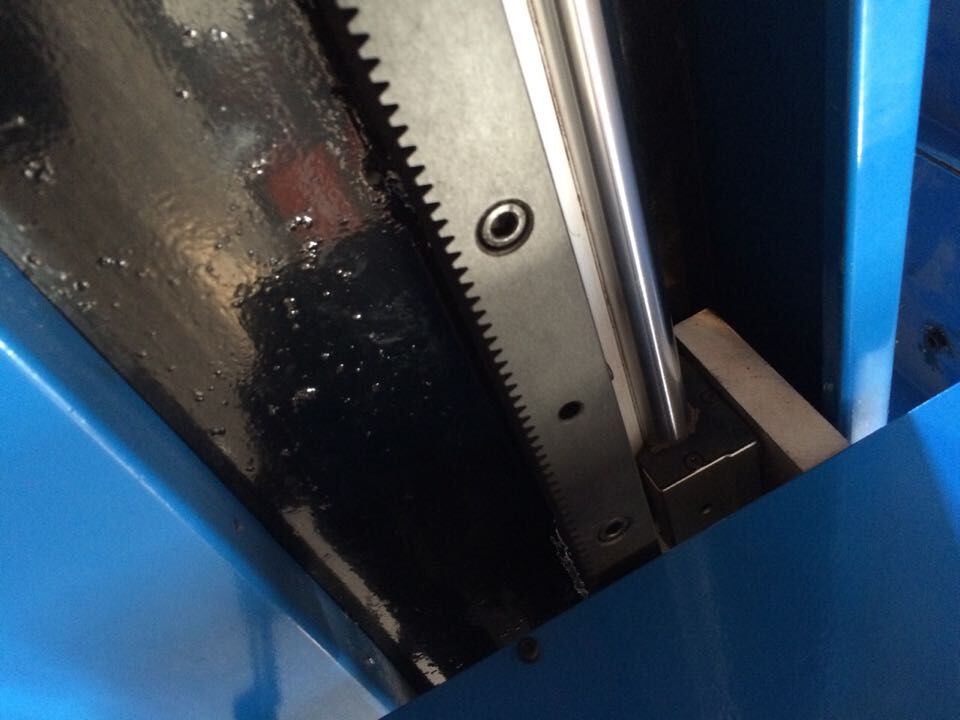 機器縱向采用高精度齒條與日本進口松下伺服電機結合使用,所使用的齒輪、齒條全部經過全自動新型淬火設備加以淬火處理,精密的加工工藝,使其精度達到了GB/T100967-9級標準。同時用臺灣雙滾軸直線導軌保證縱向行走更加精準。